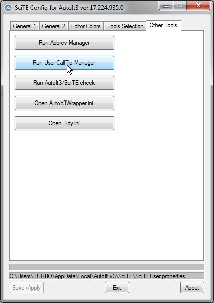 Voilà, les includes sont enregistrés. Il faut enregistrer les fonctions maintenant.Clic sur l'onglet "other tools" puis sur le bouton "user call tip manager" Sélectionner le dossier