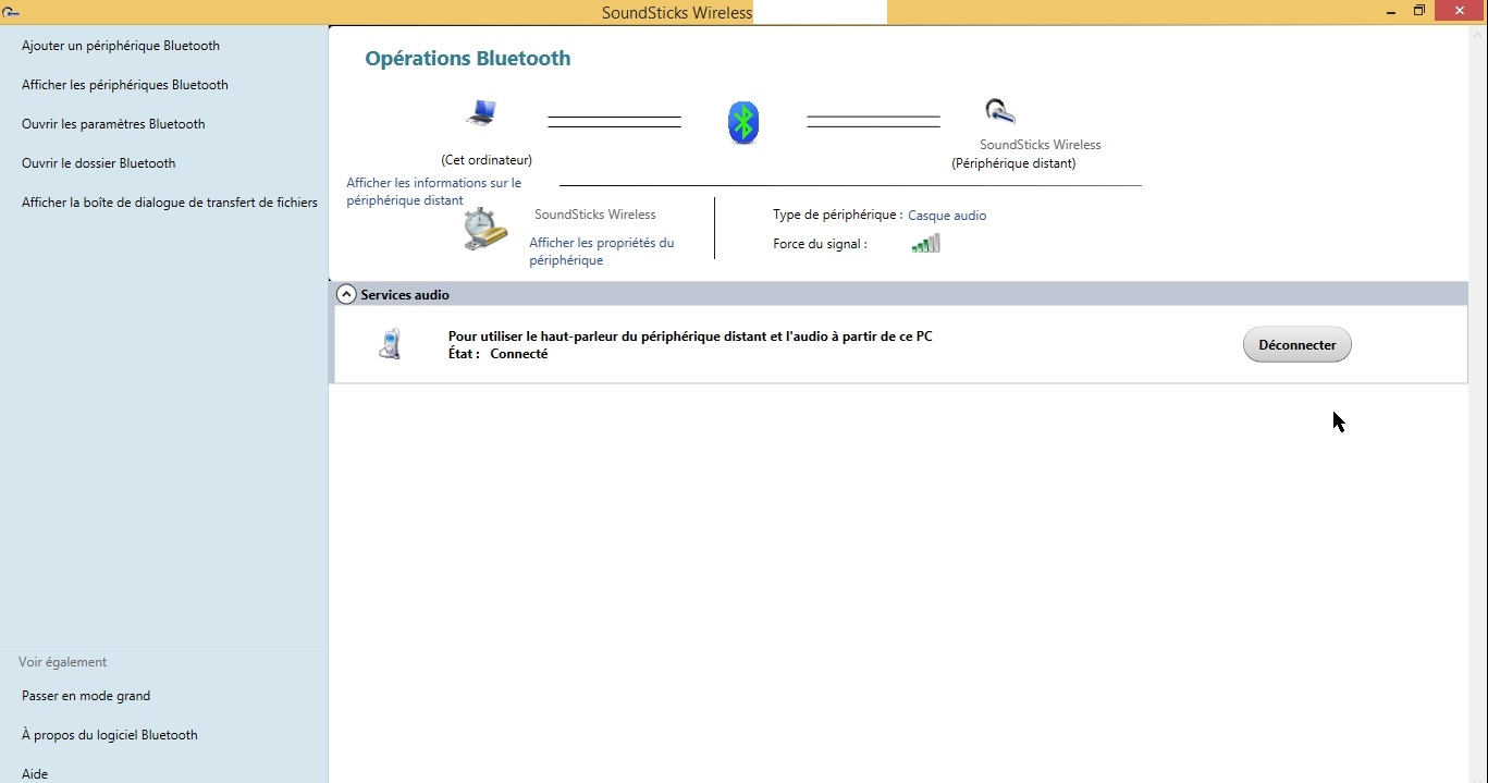 En fait j'ai une fenêtre qui me montre l'état de connexion des enceintes bluetooth et j'active et désactive la connexion entre mon ordinateur et les enceintes à l'aide d'un bouton.