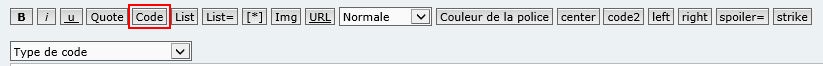 Lors de la rédaction de votre message, si vous devez mettre en valeur du code, procédez comme ceci :