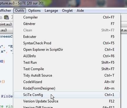 C:\Program Files\AutoIt3\IncludePDe Scite, ouvrir Scite Config Ouvrir la "dialogbox" et sélectionner le dossier clic sur save+apply.