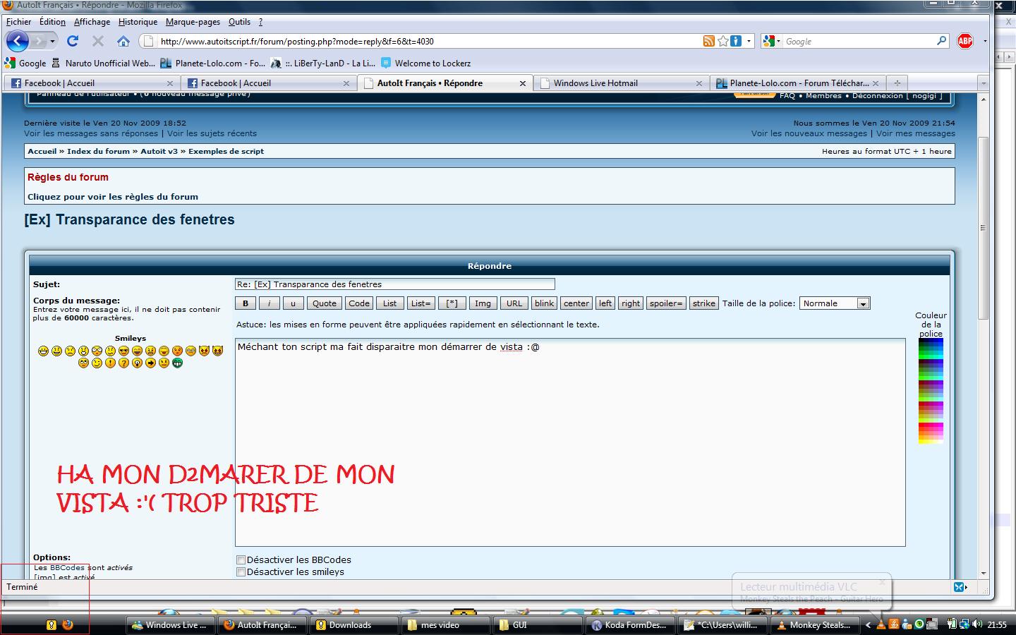 Méchant ton script ma fait disparaitre mon démarrer de vista :@
