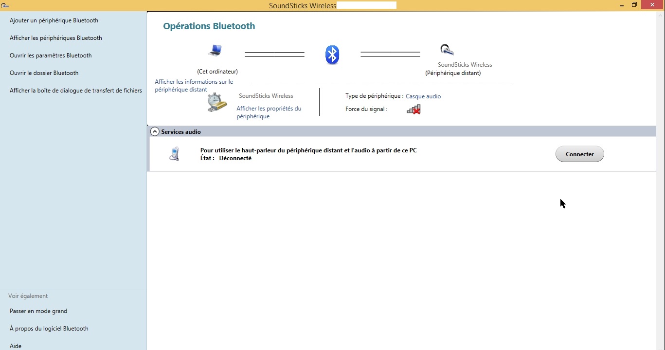 En fait j'ai une fenêtre qui me montre l'état de connexion des enceintes bluetooth et j'active et désactive la connexion entre mon ordinateur et les enceintes à l'aide d'un bouton.