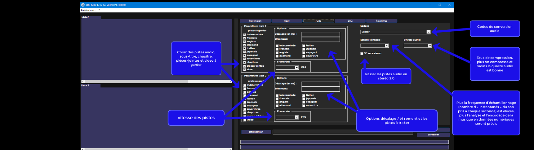 Conçu pour multiplexer, modifier et/ou convertir des videos avec plusieurs paramètres