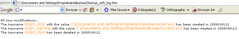 Aussi un fichier Htm sera crée (une sorte de logfile, mais plus joli :) voir screenshot) pour se souvenir des précédentes manipulations et donc mieux s'y retrouver.